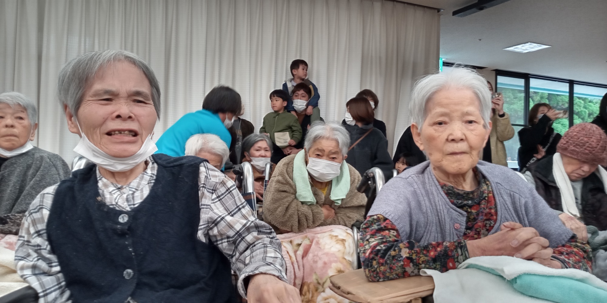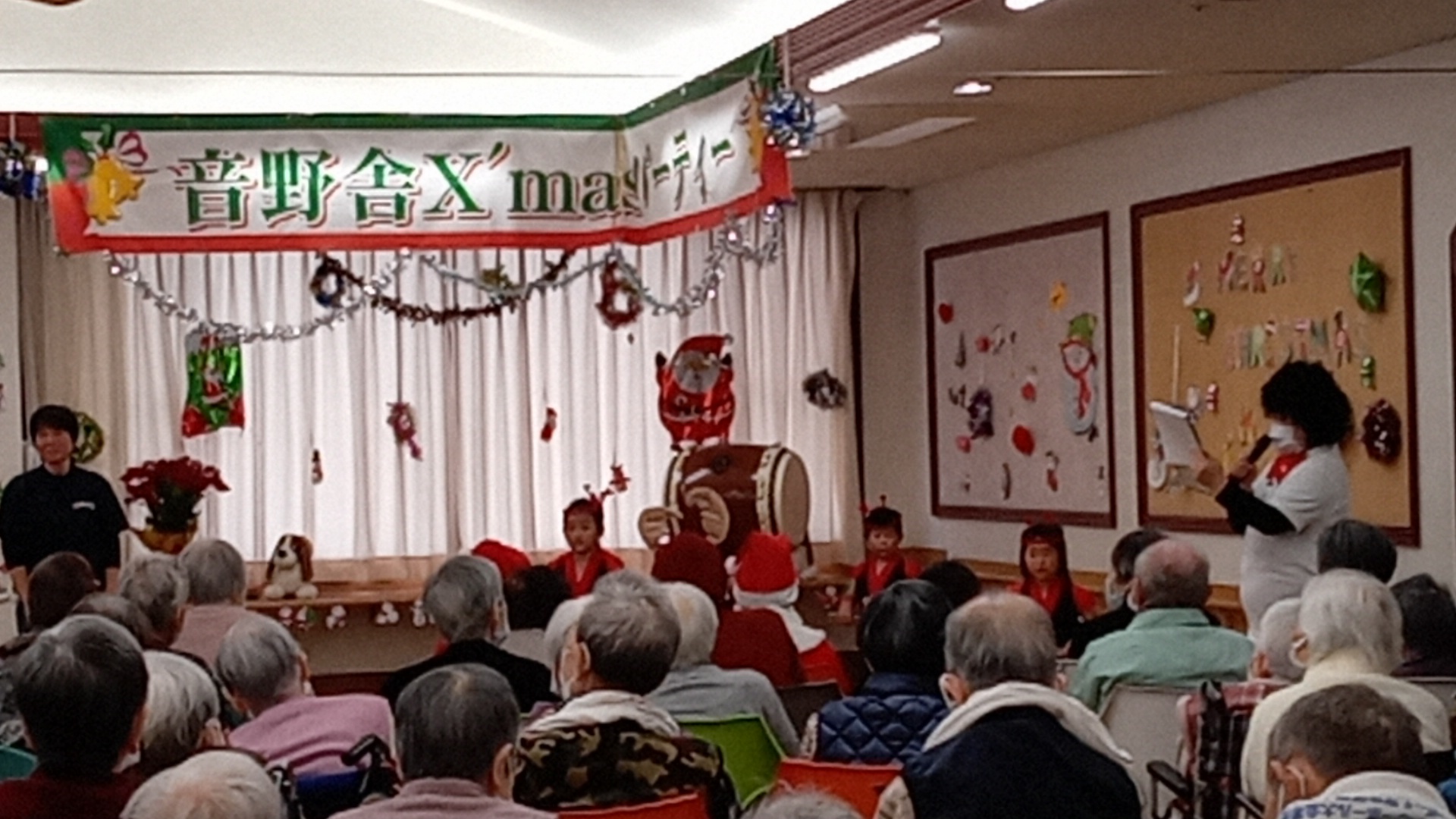 頴娃のちどり保育園,知覧の中央保育園の園児の皆様をお招きし,クリスマス会を開催しました。ご利用者の皆様園児の方々の太鼓や遊戯に楽しんでいらっしゃいました( *´艸`)
