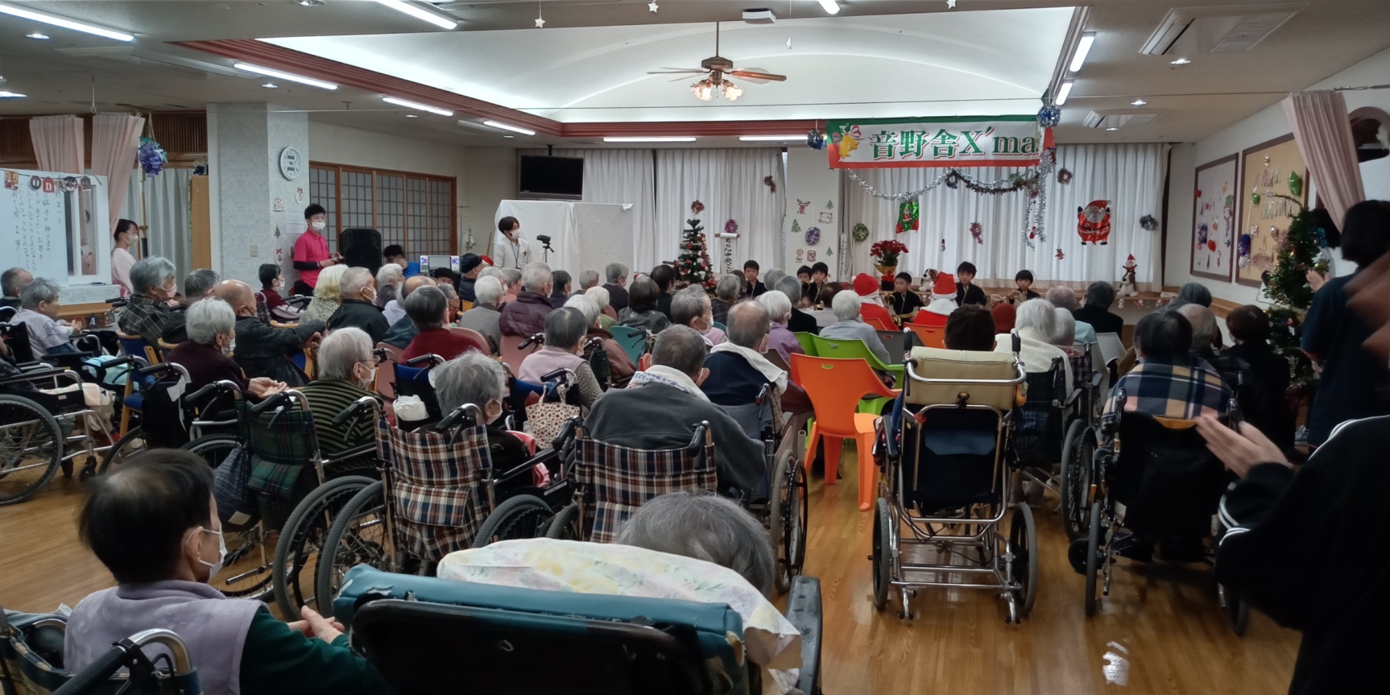 懐かしい伴奏が流れると、アドバンスの方々の歌や演奏に合わせ、自然と口ずさんだり、手拍子をされ、楽しい一時を楽しまれた様子でした。