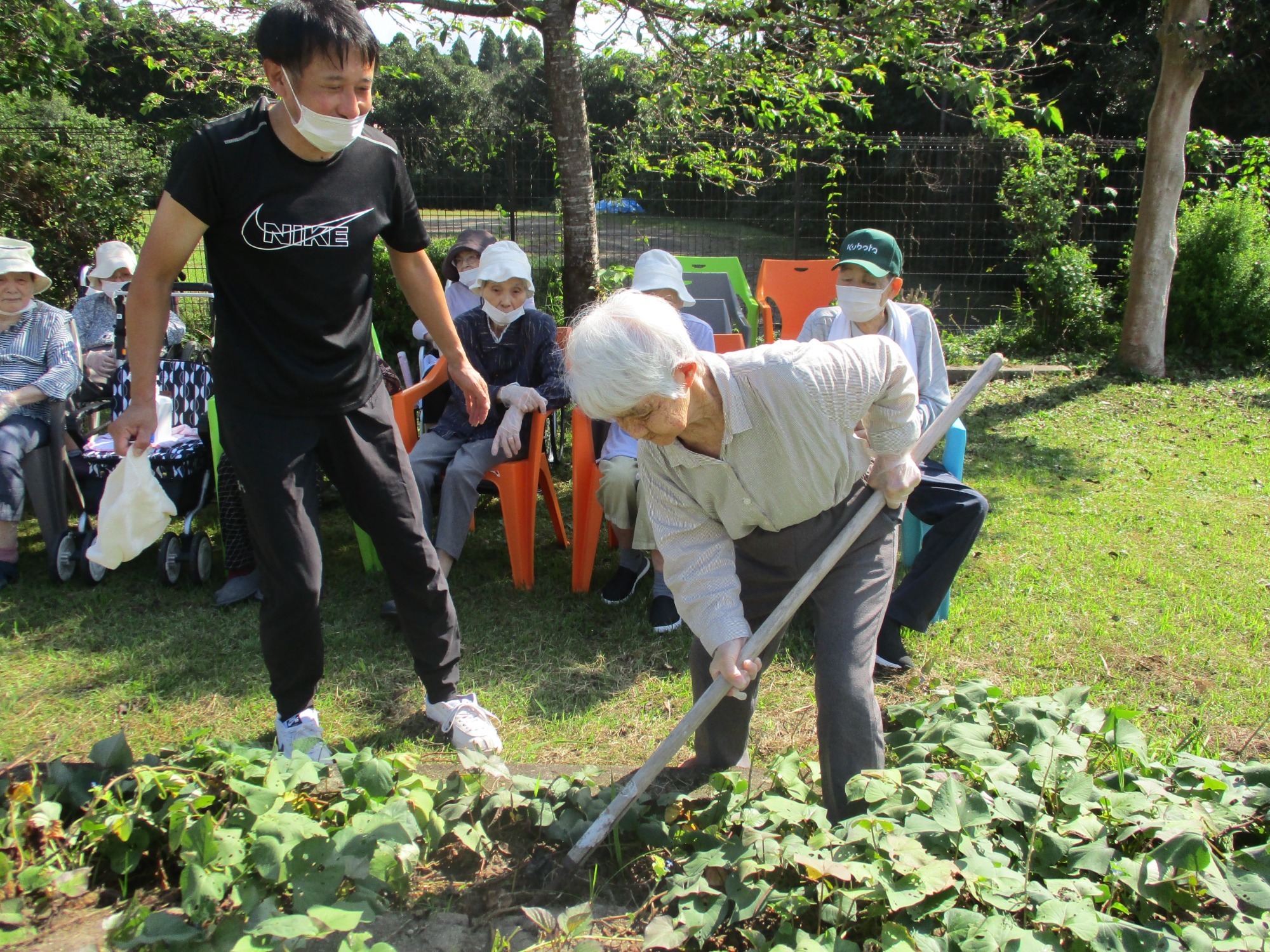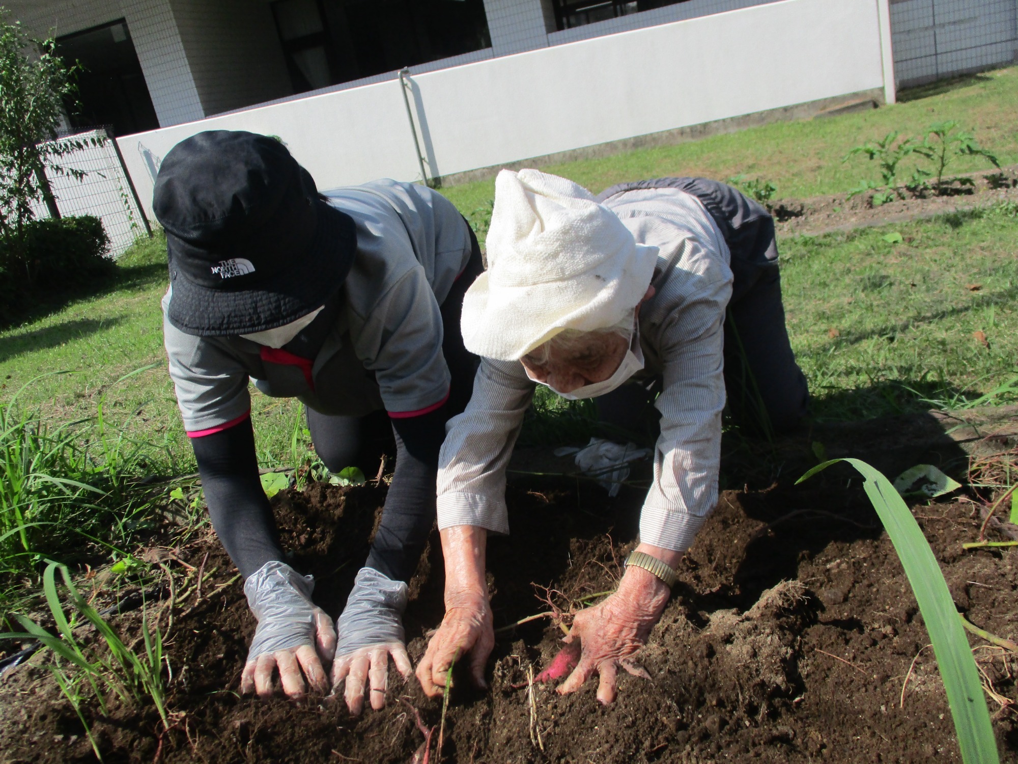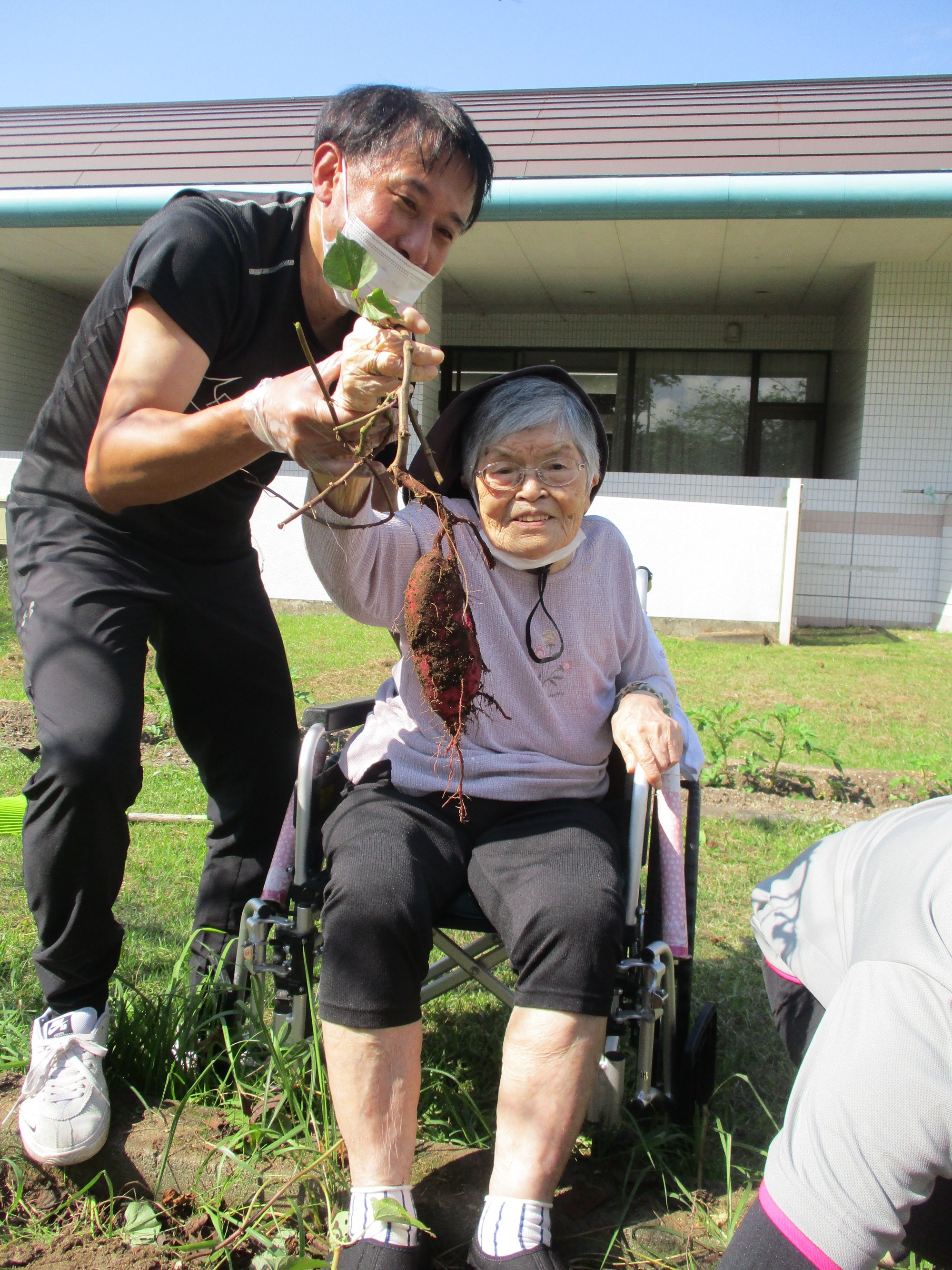 5月に植えた芋を掘りました。畑をみるとムズムズするのかジッとしていられません。早く土いじりがしたくてソワソワ…。職員も一緒に楽しみました。11月の焼き芋が楽しみです。