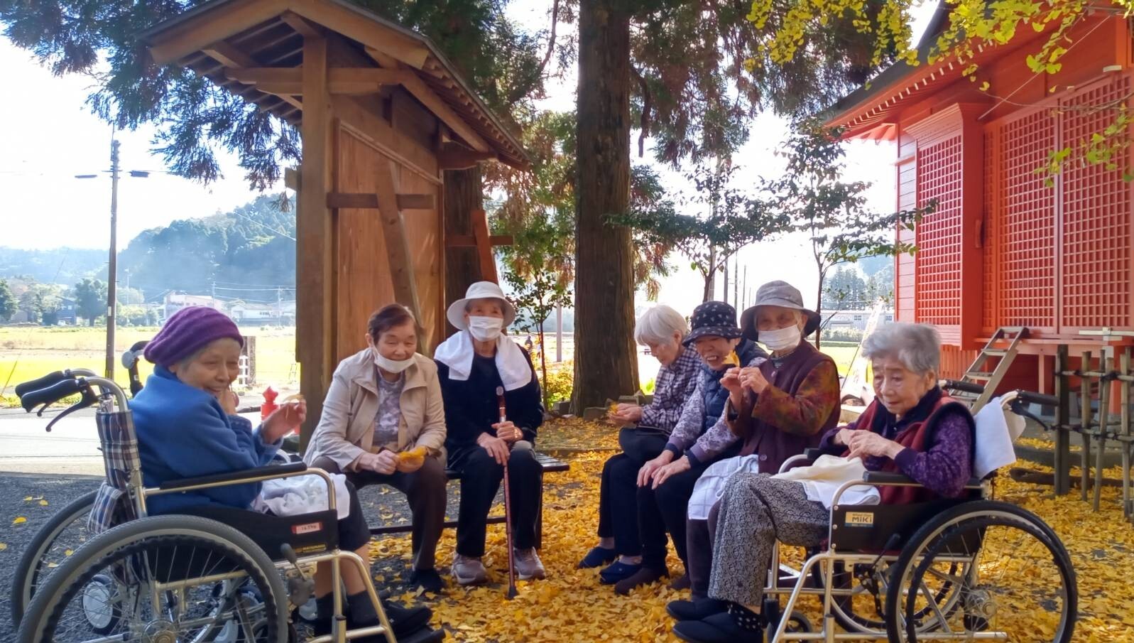 お天気が良かったので豊玉姫神社に紅葉を見に行きました。ちょうど七五三と重なり着物姿の女の子を見て喜ばれていました。イチョウの葉を持ち帰り各自お部屋に飾ったりと楽しい思い出となったようです。
