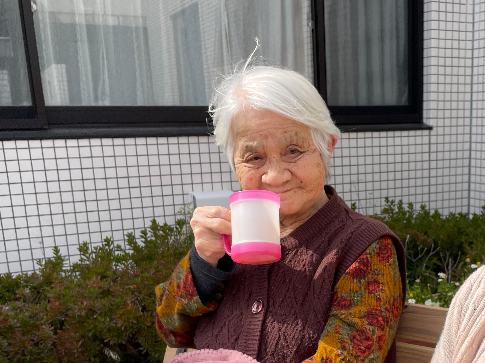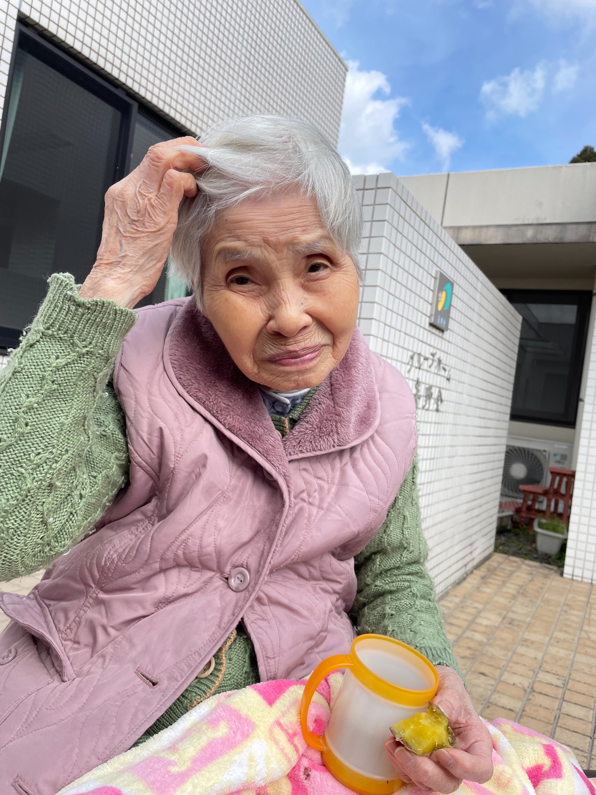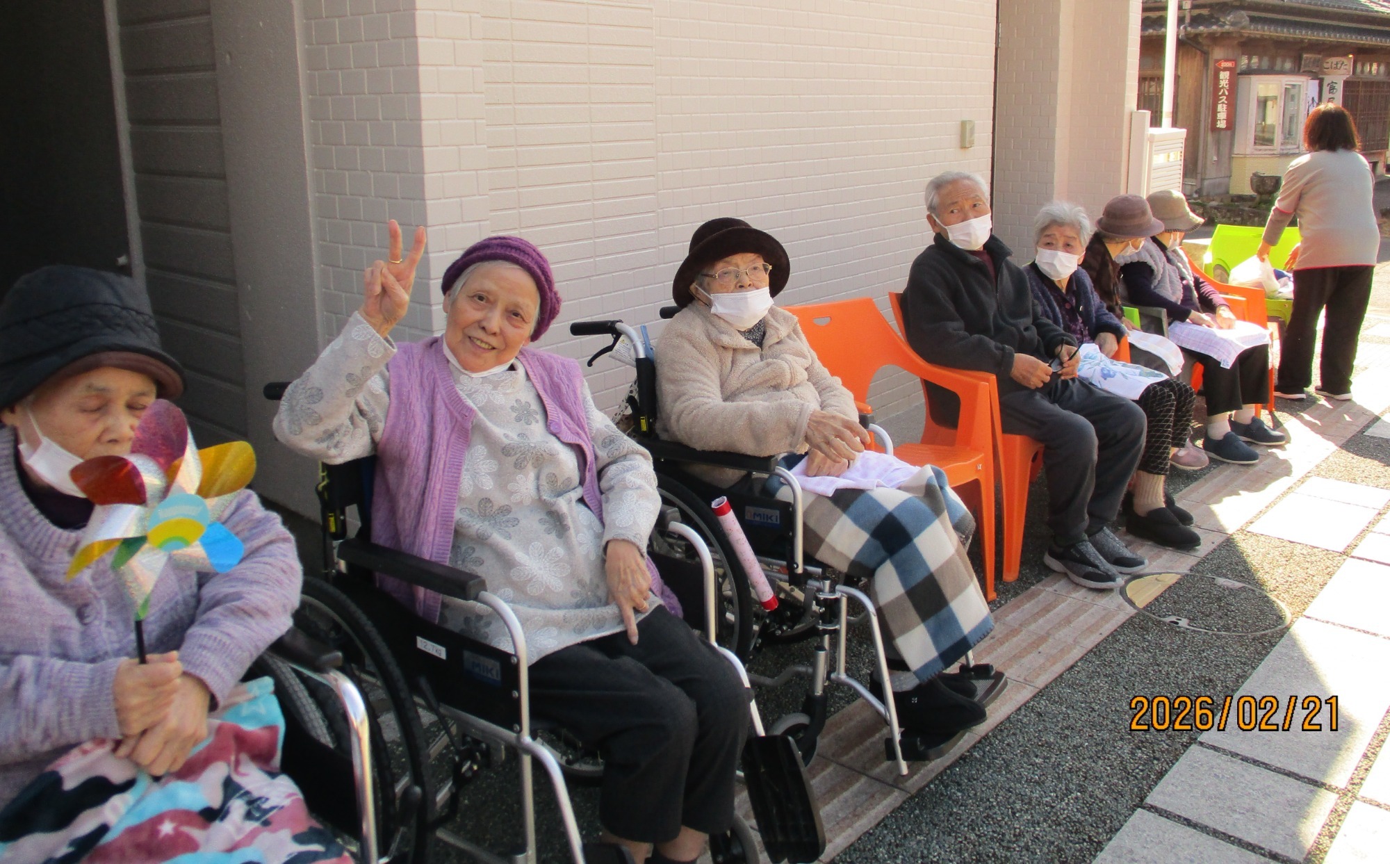 ぽかぽか日和。玄関先でお花を植えたりお茶を飲んだり。利用者様曰く「園遊会」だそうな。桜の頃は「桜を見る会」を開催しましょうね(^^♪